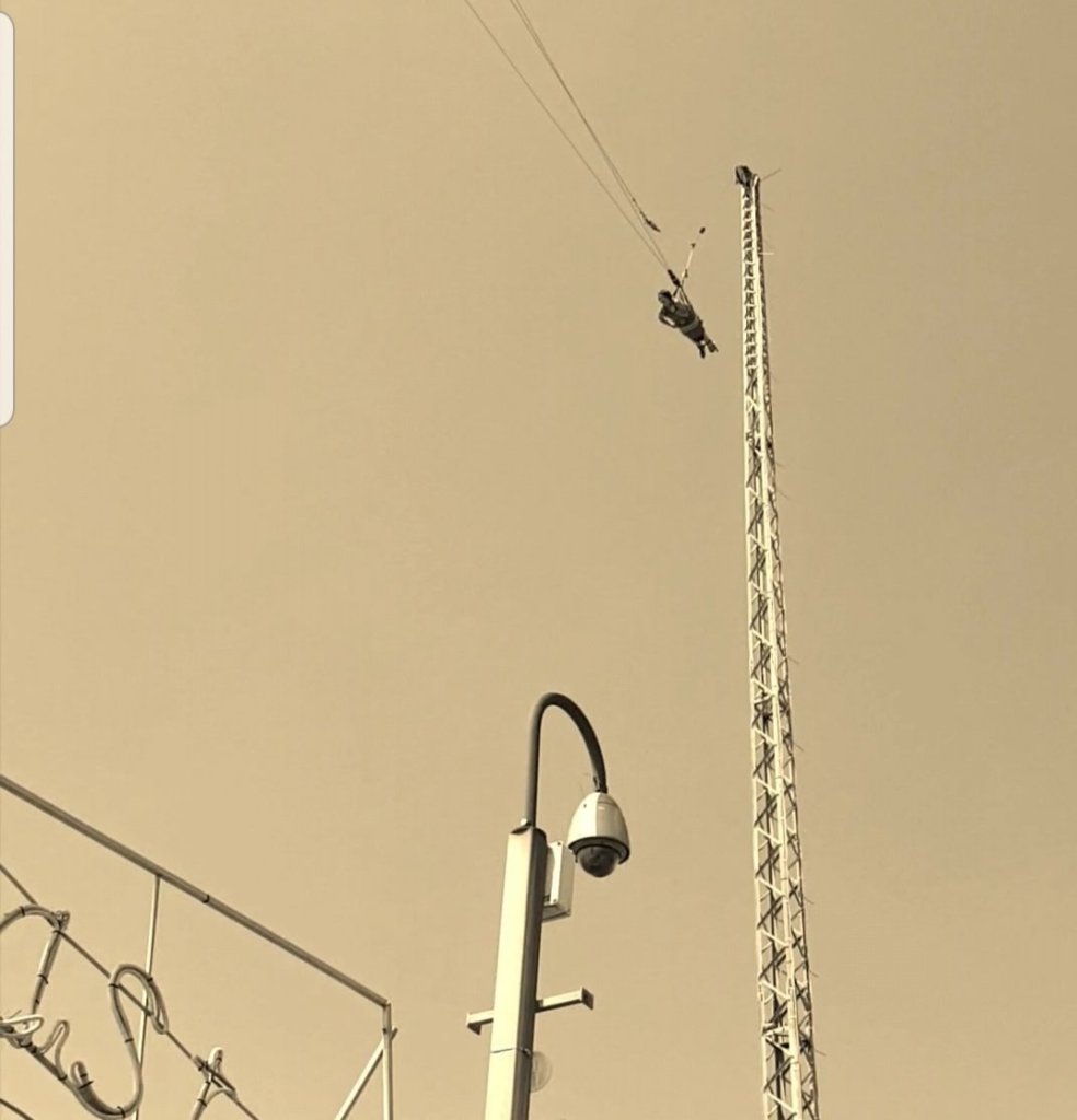 I tak unosi sie tą nasza mama Vi ponad wszystko. Coraz wyżej i wyżej. Linia, gdzie morze styka się z niebem z tej perspektywy jest nieziemsko oddalona. Widok zapiera dech w piersiach. Maszyna przestała pracować, taśmy się zatrzymały. Oznacza to, że wysokość 38 metrów została osiągnięta. Na dole pani z obsługi pokazuje kciuka do góry. To znak, że można pociągnąć za żółtą rączkę i zlecieć, spaść, skoczyć.. zwał jak zwał. Ostatnie spojrzenie na horyzont, potem w dół. Moja Miśka wciąż patrzy w górę. Jaśko twardo nagrywa. Endorfiny zaczynają szaleć. Żołądek daje o sobie znać. Głęboki oddech. Przyszła Wioletta. Już jest dobrze. We dwie raźniej. Ok, to spadam..